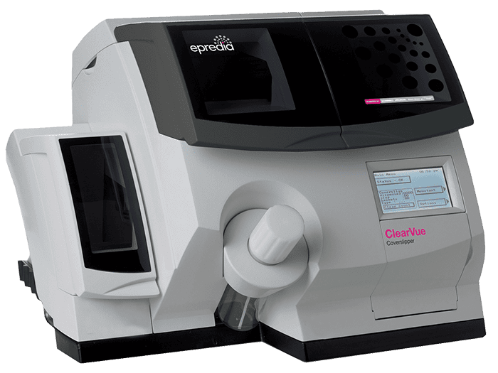 Delivering speed and accuracy to complete the coverslipping workload for the busiest of laboratories, the ClearVue Coverslipper accepts pre-loaded coverslip hoppers to deliver a clean, single coverslip consistently every time.